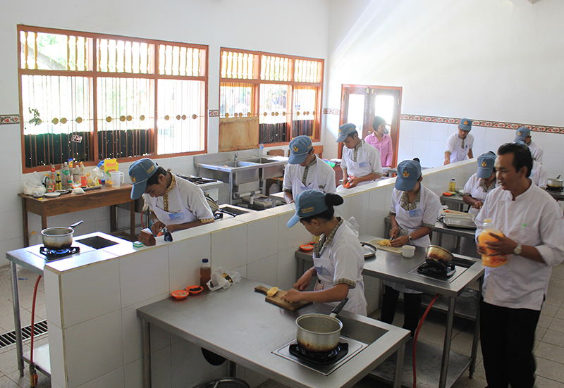 FASILITAS PENUNJANG PENDIDIKAN DI SMKN PGRI PAYANGAN Gedung bertingkat Ruang Kelas Nyaman sudah dilengkapi dengan LCD Proyektor TPKU (Tempat Praktek Keterampilan Usaha) STEP Ubud Tempat Praktek yang Autentik dengan nama STEP Ubud Training Hotel dilengkapi dengan 8 Kamar hotel , Restaurant, Kitchen, dan Laundry dengan standar Internasional. Dapur praktikum 2 Laboraturium Komputer Perpustakaan Layanan Internet Parkir yang memadai Kantin Sekolah